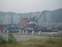 The Port of Zhuhai is the port of the prefecture-level city of Zhuhai, on the west side of the Pearl River estuary in the Chinese province of Guangdong. The Port of Zhuhai is composed of seven main port areas: Gaolan, Wanshan, Jiuzhou, Xiangzhou, Tangjia, Hongwan and Doumen.[1] The main areas are the Jiuzhou Port Area to the east of the city, and the Gaolan Port Area to the west. As of 2012, the port had 131 berths, 126 production berths, of which 17 were deep-water berths over 10,000DWT.[2]