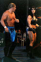 Chyna[11] (born Joan Marie Laurer; December 27, 1969 – April 17, 2016) was an American professional wrestler, glamour model, pornographic actress, author and bodybuilder. She first rose to prominence in the World Wrestling Federation (WWF, now WWE) in 1997, where she was billed as the "Ninth Wonder of the World" (André the Giant was already billed as the eighth). A founding member of the stable D-Generation X as the promotion's first female enforcer, she held the WWF Intercontinental Championship (the only female performer to do so) twice and the WWF Women's Championship once.[6] She was also the first woman to participate in the Royal Rumble match and King of the Ring tournament, as well as to become number one contender to the WWF Championship.[12] With singles victories over several prominent male wrestlers – including multiple-time world champions Triple H, Kurt Angle, Chris Jericho, and Jeff Jarrett[13] – Chyna left what WWE called "a lasting legacy as the most dominant female competitor of all time".[12] After leaving the WWF in 2001, Chyna wrestled sporadically, with New Japan Pro Wrestling (NJPW) in 2002 and Total Nonstop Action Wrestling (TNA) in 2011. The latter was her final appearance in a wrestling ring.