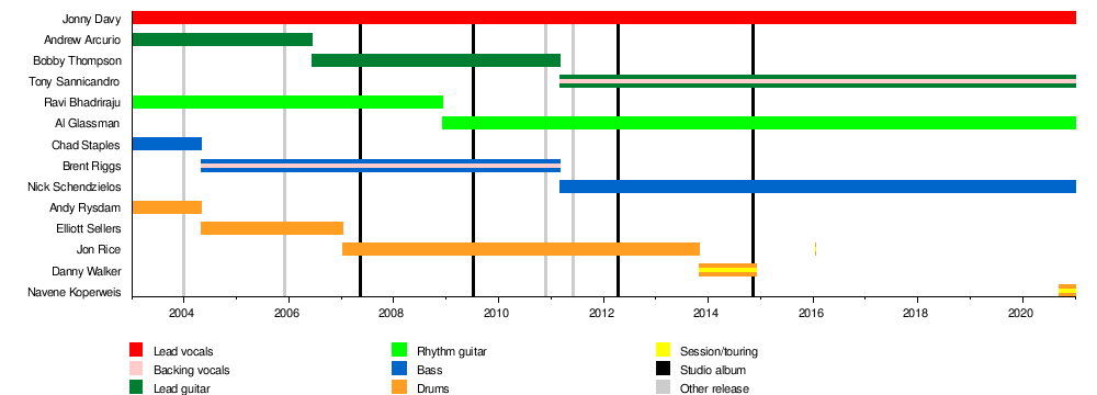 On January 22, 2016, it was announced that drummer Jon "The Charn" Rice had rejoined the band for a one-off show. Whether he has rejoined on a permanent basis has not been confirmed.[30]
