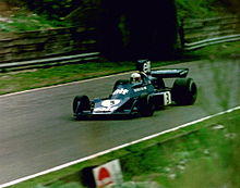 He rapidly ascended to the ranks of Formula One after moving to Britain in 1970. His Formula 1 debut occurred at the US Grand Prix at Watkins Glen in 1972 with McLaren, where he ran as high as third place before spinning and finishing ninth. Immediately becoming a name to watch, he continued his development the following year, winning the 1973 SCCA L&M Championship and racing five times in F1. In France, he almost won in only his third start in F1 before crashing into Emerson Fittipaldi, the reigning World Champion, who said after the crash about Scheckter: "This madman is a menace to himself and everybody else and does not belong in Formula 1."[3] In his next start, the British Grand Prix at Silverstone, Scheckter's spin triggered a major accident which took nearly a dozen cars out of the race. The Grand Prix Drivers Association demanded his immediate banishment, which was only put off when McLaren agreed to rest their driver for four races.[3] Scheckter's McLaren M23 bore the number zero during the Canadian and American Grands Prix of 1973. Scheckter is one of only two F1 drivers to compete under this number, the other being Damon Hill. During the practice for the American event at the Watkins Glen circuit, Frenchman François Cevert, who was due to be Scheckter's Tyrrell teammate for 1974, was killed in an appalling accident at the fast uphill Esses corners. Scheckter was behind Cevert when he crashed, and he stopped his McLaren, got out of his car and attempted to help Cevert out of his destroyed Tyrrell, but the 29-year-old Frenchman had been cut in half by the circuit's poorly installed Armco barriers and was already dead. Witnessing Cevert's dreadful accident left an indelible mark on the South African and caused him to abandon his reckless ways, becoming a more mature and calculating driver as a result.