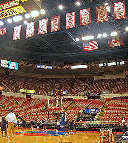 The Detroit Pistons used the arena for Game 5 of their 1984 playoff series against the New York Knicks when the Pontiac Silverdome was unavailable due to a scheduling conflict.[5][39] In the game, Pistons star Isiah Thomas scored 16 points in the final 1:34 of regulation to send the game into overtime before the Pistons lost.[5][39] The Pistons were forced to return to Joe Louis Arena for 15 games during the 1984–85 season, after the roof of the Silverdome collapsed during a snowstorm.[5]