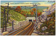 Construction of the Hoosac Tunnel was a significant issue within the state during Andrew's tenure. The state had loaned its builder, the Troy and Greenfield Railroad, $2 million in the 1850s to support the construction. In 1861, both outgoing Governor Banks, and Andrew, after he took office, refused to sign a bill authorizing additional funding to the financially troubled project. Andrew lacked confidence in Herman Haupt, the tunnel's chief engineer, and withdrew the state engineer overseeing the project.[53] These actions cost Andrew votes in the 1861 election in the towns on the railroad route, but not enough to cost him the election.[54] The state took over the tunnel project in 1862, and it was finally completed at great expense in 1875.[53]