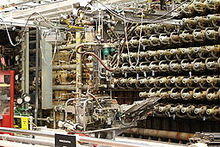 Even before the Hanford Site started up the B Reactor, the first of its three reactors, on September 15, 1944, Wheeler had been concerned that some nuclear fission products might turn out to be nuclear poisons, the accumulation of which would impede the ongoing nuclear chain reaction by absorbing many of the thermal neutrons that were needed to continue a chain reaction.[34] In an April 1942 report, he predicted that this would reduce the reactivity by less than one percent so long as no fission product had a neutron capture cross section of more than 100,000 barns.[35] After the reactor unexpectedly shut down, and then just as unexpectedly restarted about fifteen hours later, he suspected iodine-135, with a half life of 6.6 hours, and its daughter product, xenon-135, which has a half life of 9.2 hours. Xenon-135 turned out to have a neutron capture cross-section of well over 2 million barns. The problem was corrected by adding additional fuel rods to burn out the poison.[36]