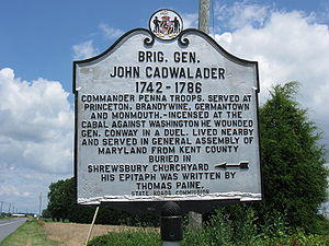 John Cadwalader (January 10, 1742 – February 10, 1786) was a commander of Pennsylvania troops during the American Revolutionary War and served under George Washington. He was with Washington at Valley Forge.