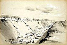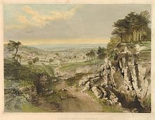 In the 19th century Bourne gave face to the fascination with the new railway technology.[32] He was among the earliest artists to "integrated the depiction of railway construction into a well established landscape tradition. The rails were sometimes barely visible or coexisted with the stock landscape elements of cattle, rocks, sky, and greenery."[33] Nowadays Bourne is considered one of the greatest railway artists,[31][34][35] and is described by Elton[36] as "the Piranesi of the Railway Age."[18][37] According to Russell (2001) Bourne's two series of railroad scene's were the only works, that equalled the work of Thomas Shotter Boys.[38] Burman & Stratton (1997) explained: