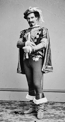 On March 18, 1865, less than a month before he assassinated President Abraham Lincoln, John Wilkes Booth appeared at Ford's Theatre, Washington, in the play The Apostate which was performed as a benefit for John McCullough.[4] McCullough came West in 1866 with his mentor Edwin Forrest where he grew as an actor through practice before audiences in Sacramento and Virginia City. The most celebrated roles of McCullough's career, King Lear, Virginius, and Richelieu were first performed before Virginia City audiences. [5] In 1869, in partnership with Lawrence Barrett, McCullough built the California Theatre on Bush Street in San Francisco. It boomed during economic prosperity becoming one of the best regarded theaters West of the Rocky Mountains. Selling out his interest in 1877, McCullough created a combination company that toured America. He was known for an intelligent, but not intellectual Hamlet and had an average Joe quality in performance which tied him to the West's working classes. [6]
