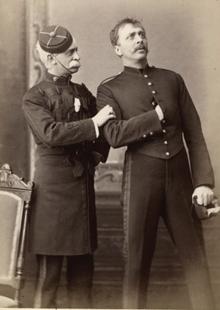Their first production, on 4 October 1879, was a revival of The Queen's Shilling, one of their Court successes, an adaptation of an old French comedy by Jean-François Bayard.[31] Madge Kendal had the star part, but her husband's dashing army officer was also well liked, and The Morning Post praised Hare's "masterly" performance as the old colonel, giving "extraordinary zest and brilliancy" and "bring[ing] down the house in shouts of laughter and applause".[32] The partnership had another early success at the beginning of 1880 with a revival of Tom Taylor's popular play, Still Waters Run Deep. The Kendals took the main roles but the laurels went to Hare in the comparatively small part of Potter, a performance described by the writer T. Edgar Pemberton as "a masterpiece of character-acting, faultless in get-up and, indeed, in all respects. … [A] keen instance of unexaggerated eccentricity".[33]
