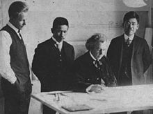 While walking in San Diego, he saw a sign calling for a draftsman for the Pacific Building Company. Wright was hired and drew architectural details for bungalows. He soon realized that he had a talent for the profession and sought out a professional architectural firm. He found a position in the firm of Harrison Albright, one of the preeminent architects in Los Angeles. Originally acting as a clerk, Wright received his first design commission for a house in Escondido in 1912. The design was heavily borrowed from his father's Sherman M. Booth House in Glencoe, Illinois. Pleased with the results, Albright gave Wright the opportunity to design the Workingman's Hotel, a three-story building. During the project, Wright worked closely with sculptor Alfonso Iannelli, whom he would befriend. After the hotel was completed, Wright determined that he should receive formal architectural training. He intended to apprentice with Vienna Secession architect Otto Wagner in exchange for room and board in Vienna, Austria.[1]