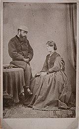 Their son was born soon after, in December 1865, and was christened Rudyard after Rudyard, Staffordshire, the place where his parents had first met;[3] their daughter Alice [4] also known as Beatrice Kipling [5] was born in 1868. His life-long friend John Griffiths, whom he had met whilst working together at the South Kensington Museum and worked with him at the Bombay School of Art, became Rudyard's godfather.[6] During 1870–1872 Kipling was commissioned by the government to tour the Punjab, North-West Frontier and Kashmir and make a series of sketches of Indian craftsmen as well as various sights and antiquities in these regions.[7][8][9] Several of these sketches are presently at the Victoria and Albert Museum whilst others were printed in a number of books.[3]