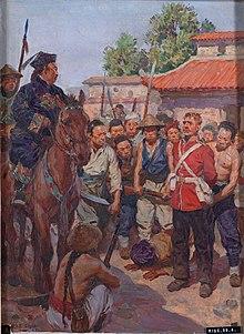 The next day the prisoners were brought before a local mandarin and were ordered to kow-tow, under penalty of torture or execution if they did not comply. Private Moyse alone refused and was savagely beaten and then beheaded, his body afterwards thrown on a dungheap. He was, ironically, his regiment's only casualty in the fighting.