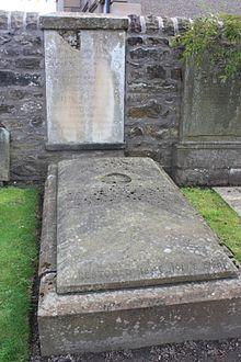 He is buried against the southern wall of Greyfriars Churchyard in Perth, close to the southern pedestrian gate. The stone was erected by Robert Mylne and has been restored many times.