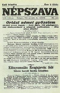 He worked as a high school teacher and journalist in Hungary prior to the revolution of 1918–1919. He wrote for the official organ of the Hungarian Social Democratic Party, Népszava (People's Voice), and was a war correspondent during the years of World War I.[1][5]