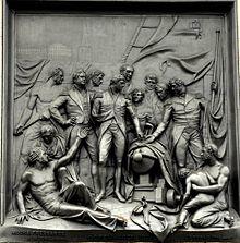 His best known work is The Battle of Copenhagen, one of the four bronze reliefs on the pedestal of Nelson’s Column in Trafalgar Square. The choice of sculptors was influenced by the results of the 1844 Westminster Hall exhibition, and Ternouth was recommended for this commission by the prime minister, Sir Robert Peel. While Ternouth was still at work on the relief, he found it necessary to publicly rebut rumours that he had died. The plaster relief was ready by June 1848, and Prince Albert visited Ternouth’s studio to inspect it on 1 July 1848.[1]