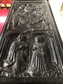 - Aubrey de Vere, who married Margaret Spring, the daughter of Sir John Spring; their grandson, Robert de Vere, became 19th Earl of Oxford.[16] Their daughter, Anne de Vere (d.1617), married, firstly Christopher Shernborne (d. 7 July 1575), by whom she had a son, Francis Shernborne, esquire, and secondly John Stubbs, whose right hand was cut off on 3 November 1579 for his authorship of The Discovery of a Gaping Gulf which criticized Queen Elizabeth's proposed marriage to Francois, Duke of Alençon.[17][18]