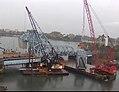 On March 31, 2011, the rail span was closed to rail traffic after a routine inspection found corrosion damage on key structural elements. A preliminary estimate of repair costs was $120,000.[27] The railway span and approaches were removed in February 2012 to make room for the new bridge.[28]