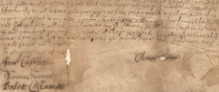 Brewster was born in Scrooby, Nottinghamshire, on August 12, 1593. In around 1610, he accompanied his family to Leiden in Holland, where he married his first wife.[2] Brewster did not join his family on the Mayflower in 1620, however. He stayed behind in Leiden instead with his wife, who died soon after, and their infant son, who also died. Brewster would have been 27 at the time. Brewster came to America on the ship Fortune in 1621.