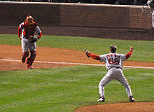 Papelbon made his major league debut with the Red Sox on July 31, 2005 against the Minnesota Twins, in which he went 51&fras1;3 innings, struck out seven batters and issued five walks in Boston's 4–3 victory.[11] He did not receive a decision.[12] He earned his first major league win on September 12, pitching three scoreless innings in an extra-inning game against the Toronto Blue Jays.[12] In two postseason appearances in 2005, he pitched four scoreless innings against the eventual World Series Champion Chicago White Sox. The Red Sox had plans of slotting Papelbon into their starting rotation prior to the regular season in 2006.[13] However, the incumbent closer, Keith Foulke, proved to be ineffective trying to come back from an injury-plagued 2005.[14]