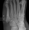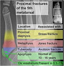 - ^ Polzer H, Polzer S, Mutschler W, Prall WC (October 2012). "Acute fractures to the proximal fifth metatarsal bone: development of classification and treatment recommendations based on the current evidence". Injury. 43 (10): 1626–32. doi:10.1016/j.injury.2012.03.010. PMID 22465516.
