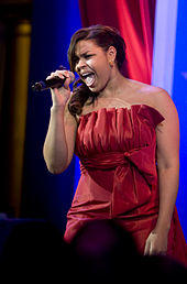 Jordin Brianna Sparks (born December 22, 1989)[1] is an American singer-songwriter and actress. She rose to fame in 2007 after winning the sixth season of American Idol at age 17, becoming the youngest winner in the series' history. Her self-titled debut studio album, released later that year, was certified platinum by the Recording Industry Association of America (RIAA) and has sold over two million copies worldwide.[2] The album spawned the Billboard Hot 100 top-ten singles "Tattoo" and "No Air"; the latter, a collaboration with Chris Brown, is currently the third highest-selling single by any American Idol contestant, selling over three million digital copies in the United States.[3] The song earned Sparks her first Grammy Award nomination for Best Pop Collaboration with Vocals.[4]