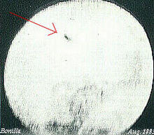 On August 12, 1883, the astronomer José Bonilla reported that he saw more than 300 dark, unidentified objects crossing before the Sun while observing sunspot activity at Zacatecas Observatory in Mexico.[1] He was able to take several photographs, exposing wet plates at 1/100 second. These represent the earliest photos of an unidentified flying object.[2] It was later suggested that the objects were high-flying geese, while some ufological literature interpreted the objects as either alien spacecraft or an unsolved mystery.