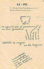 Tablada is recognized as among the originators of modern Mexican poetry and is credited with the introduction of haiku to his country. His collection Un dia (1919)[6] contains 38 ‘synthetic poems’ and has been described as “the first book of original haiku written by a poet outside Japan”.[7] It was followed by a collection of calligrams, Li-Po y otros poemas (1920),[8] and in 1922 by El jarro de flores, containing a further 68 haiku.[9] His haiku are distinguished by their aesthetic quality, as for example in