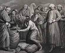 In the Bible, Joseph discloses himself to his brethren before they return to their father the second time after buying grain.[80] But in Islam they returned leaving behind Benjamin because the mizzen bowl of the king was found in his bag.[81] Similarly, the eldest son of Jacob had decided not to leave the land because of the oath taken to protect Benjamin beforehand.[82] When Jacob learned their story after their return, he wept in grief till he lost his eyesight because of sorrow.[83] He thus charged his sons to go and inquire about Joseph and his brother and despair not of God's mercy. It was during this return to Egypt that Joseph disclosed his real identity to his brothers. He admonished and forgave them, he sent also his garment which healed the patriarch's eyes as soon as it was casted unto his face.[84] The remaining verses describe the migration of jacob's family to Egypt and the emotional meeting of Jacob and his long lost son, Joseph. The family prostrated before him hence the fulfilment of his dream aforetime.[85]