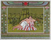 Hermann Gunkel, Hugo Gressmann and Gerhard von Rad identified the story of Joseph as a literary composition,[47] in the genre of romance,[47][48] or the novella.[49][50][51] As a novella, it is read as reworking legends and myths, in particular the motifs of his reburial in Canaan, associated with the Egyptian god Osiris.[52] Others compare the burial of his bones at Shechem, with the disposal of Dionysus's bones at Delphi.[53][54][55] For Schenke, the tradition of Joseph's burial at Shechem is understood as a secondary, Israelitic historical interpretation woven around a more ancient Canaanite shrine in that area.[56] The reworked legends and folklore were probably inserted into the developing textual tradition of the Bible between the 8th and 6th centuries BCE. Most scholars[57] place its composition in a genre that flourished in the Persian period of the Exile.[58][3][59][60][61]
