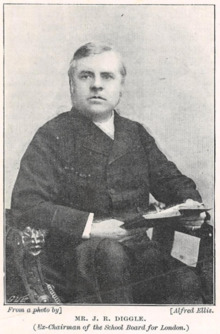 The Reverend Joseph Robert Diggle JP (12 May 1849 – 16 June 1917) was a British Anglican clergyman, politician and public servant.[1] He is notable for his campaign to change the law to allow clergymen to take seats in the House of Commons (although he was unable to win a seat himself), and for his chairmanship of the London School Board. His combative approach to political debate was the key to his career, helping him to run the Board for nine years but denying him any higher office.