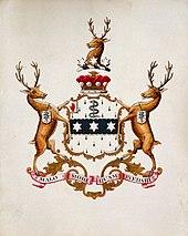 In 1883 Queen Victoria created him a Baronet, of Park Crescent in the Parish of St Marylebone in the County of Middlesex.[69] In 1897 he was further honoured when Her Majesty raised him to the peerage as Baron Lister, of Lyme Regis in the County of Dorset.[70][71] In the 1902 Coronation Honours list published on 26 June 1902 (the original day of King Edward VII's coronation),[72] Lord Lister was appointed a Privy Counsellor and one of the original members of the new Order of Merit (OM). He received the order from the King on 8 August 1902,[73][74] and was sworn a member of the council at Buckingham Palace on 11 August 1902.[75]
