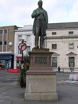 A statue to Joseph Pease stands at the junction of High Row and Bondgate, in the centre of Darlington. It was unveiled in 1875, to mark the golden jubilee of the opening of the Stockton and Darlington Railway.