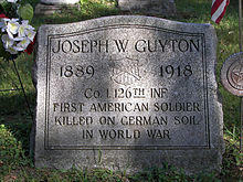 Joseph William Guyton (June 10, 1889 – May 24, 1918) was the first American soldier killed on German-held soil during World War I. Private Guyton was from the small town of Evart, Michigan.