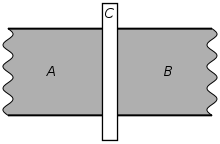 A diagram of a single Josephson junction is shown at right. Assume that superconductor A has Ginzburg–Landau order parameter , and superconductor B , which can be interpreted as the wave functions of Cooper pairs in the two superconductors. If the electric potential difference across the junction is , then the energy difference between the two superconductors is , since each Cooper pair has twice the charge of one electron. The Schrödinger equation for this two-state quantum system is therefore:[12]