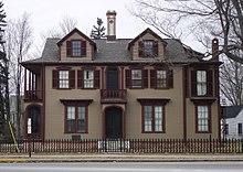 Chamberlain was born in Brewer, Maine, the son of Sarah Dupee (née Brastow) and Joshua Chamberlain, on September 8, 1828. Chamberlain was of English ancestry and could trace his family line back to twelfth-century England, during the reign of King Stephen.[5] He was the oldest of five children. It is said that he was his mother's favorite while his father was tough on him. He was very involved in his church, mostly singing in the choir. His mother encouraged him to become a preacher while his father wanted him to join the military, but he felt a reluctance towards both options. He suffered a speech impediment until shortly after graduating from college. He entered Bowdoin College in Brunswick, Maine, in 1848 with the help of local tutor and professor, William Hyde. Chamberlain learned to read Ancient Greek and Latin in order to pass the entrance exam. While at Bowdoin he met many people who would influence his life, including Harriet Beecher Stowe, the wife of Bowdoin professor Calvin Stowe. Chamberlain would often go to listen to her read passages from what would later become her celebrated novel, Uncle Tom's Cabin, which was being published in serial form in the abolitionist paper, The National Era. He also joined the Peucinian Society, a group of students with Federalist leanings. A member of the Phi Beta Kappa academic honor society and a brother of the Alpha Delta Phi fraternity, Chamberlain graduated in 1852.