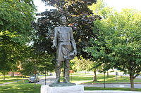 Chamberlain died of his lingering wartime wounds in 1914 in Portland, Maine, at the age of eighty-five. He is interred at Pine Grove Cemetery in Brunswick, Maine.[3] Beside him as he died was Dr. Abner O. Shaw of Portland, one of the two surgeons who had operated on him in Petersburg 50 years previously. A full study of his medical history strongly suggests that it was complications from the wound suffered at Petersburg that resulted in his death.[22] He was the last Civil War veteran to die as a result of wounds from the war and considered by some the last casualty of the war.[23]