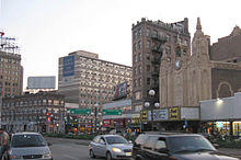 Journal Square is a business district, residential area, and transportation hub in Jersey City, New Jersey, which takes its name from the newspaper Jersey Journal whose headquarters were located there from 1911 to 2013.[1] The "square" itself is at the intersection of Kennedy Boulevard and Bergen Avenue. The broader area extends to and includes Bergen Square, McGinley Square, India Square, the Five Corners and parts of the Marion Section.[2] Many local, state, and federal agencies serving Hudson County maintain offices in the district.