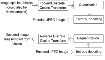 JPEG uses a lossy form of compression based on the discrete cosine transform (DCT). This mathematical operation converts each frame/field of the video source from the spatial (2D) domain into the frequency domain (a.k.a. transform domain). A perceptual model based loosely on the human psychovisual system discards high-frequency information, i.e. sharp transitions in intensity, and color hue. In the transform domain, the process of reducing information is called quantization. In simpler terms, quantization is a method for optimally reducing a large number scale (with different occurrences of each number) into a smaller one, and the transform-domain is a convenient representation of the image because the high-frequency coefficients, which contribute less to the overall picture than other coefficients, are characteristically small-values with high compressibility. The quantized coefficients are then sequenced and losslessly packed into the output bitstream. Nearly all software implementations of JPEG permit user control over the compression ratio (as well as other optional parameters), allowing the user to trade off picture-quality for smaller file size. In embedded applications (such as miniDV, which uses a similar DCT-compression scheme), the parameters are pre-selected and fixed for the application.