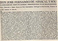 In December, fifty-three peninsulars were banished to Salta, and the decision was sent to the Junta for approval. The vocal Domingo Matheu, who had business associations with Tulla and Pedro Salvador Casas, arranged the annulment of the act, arguing that Castelli had been influenced by slander and unfounded accusations.[43] Support for Castelli began to decline, mainly due to the favourable treatment of natives and the determined opposition of the church, which attacked the public atheism of Bernardo Monteagudo, Castelli's secretary. Both royalists in Lima and Saavedra in Buenos Aires compared them with Maximilien Robespierre, leader of the Reign of Terror of the French Revolution.