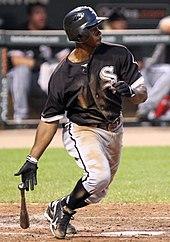 On December 15, 2009, Pierre was traded to the Chicago White Sox for two minor league pitching prospects to be named later (Jon Link and John Ely).[12] Pierre led Major League Baseball with 68 stolen bases, the second-most in a single season in franchise history after only Rudy Law's 77 in 1983.[13][14] On August 3, 2010, he hit his first and only home run of 2010 off Rick Porcello. On August 5, 2010, he stole his 500th career base against the Detroit Tigers.