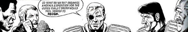 For deliberately failing in his mission Dredd himself had to be judged, in the story's epilogue Block War in prog 182. This story introduced another major character, Judge McGruder, who thought that Dredd had exceeded his authority.