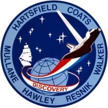 Resnik's first space flight was on the maiden voyage of Discovery from August to September 1984 as a mission specialist. Her duties included operating the shuttle's robotic arm,[32] which she helped create and on which she was an expert. She deployed and conducted experiments on a solar array wing as a potential future way of generating additional electrical power during space missions. After performing numerous dynamic tests, Resnik concluded that the experiment was very well-behaved and matched ground simulations of the array.[33] She advocated the benefits of the solar array technology, particularly for future use in powering space stations.[34]