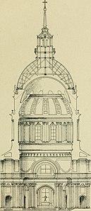 The work on the royal chapel proceeded more slowly. Its distinctive feature was the dome, one of the earliest constructed in Paris, following the church of the Val-de-Grâce, designed by his great-uncle, François Mansart and Jacques Lemercier (1645–1667), and the Collège des Quatre-Nations (1662–1670). His original plan called for a single great space under the dome, and painted decoration on the interior of the dome. However, while the work was in progress, the French army suffered reverses in the Netherlands, and the superintendent of finances, Colbert, was slow in providing funding. Hardouin-Mansart had to modify the original plan, eliminating the painted ceiling, and redesigning the dome with an interior dome, not visible from the outside. He mounted the dome on two successive drums, giving it greater height than the earlier Paris domes. He commissioned the sculptor François Girardon to make statues illustrating the themes of the building, the virtues of the Saints and the French Kings. By 1690 a large group of sculptors was at work at statues for the niches of the facade. The war was followed by a financial crisis; work was halted entirely in 1695, and did not resume until the war ended in 1699. Once the war ended, constructed resumed, and the royal chapel was finally consecrated, in the presence of the King, on 22 August 1706, not long before the death of Hardouin-Mansart. It remains his most famous work. [7]