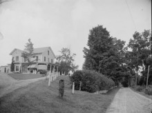 She referred to her early girlhood as the most eventful part of her life. There was the long journey to Vermont the summer she was 18 months old, and her young mother's death only four days after reaching the state which it had been hoped would give her health. There was the sojourn in New York, where William had established himself in business, and where he wanted his little daughter's company. Clear and vivid was her memory of that trip down the Hudson River taken with her father when she was three years old, and of their arrival at the small boarding school on then fashionable Bleeker Street. At six, she was back in Middlebury, browsing in her father's large and well chosen library —she could not remember the time when she did not know how to read—a library established in a newly built house four miles up the Otter from Middlebury village in a quarter of the town called Farmingdale, a house presided over by a new step-mother. Here, also she recited daily lessons to her father and did her daily "stent" of sewing or knitting.[2] Dorr grew to womanhood in a home of culture and refinement, and it is here where she began writing as a little child.[6] It is here also that the father engaged in business again, and devoted himself chiefly to the development of the Rutland marble quarries.[6] The home also included her half-brothers, Edward H. Ripley and Major General William Y. W. Ripley, both of whom became prominent officers in the American Civil War.[7]