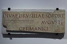 Drusilla was born in Abitarvium, modern day Koblenz, Germany. After the death of her father, Germanicus, she and her siblings were brought back to Rome by their mother and raised with the help of their paternal grandmother, Antonia Minor. In 33, Drusilla was married to Lucius Cassius Longinus, a friend of the Emperor Tiberius.[1] She and Cassius may have had a daughter who became the grandmother of Lucius Annius Vinicianus.[2] After Caligula became emperor in 37, however, he ordered their divorce and married his sister to his friend, Marcus Aemilius Lepidus.[3] During an illness in 37, Caligula changed his will to name Drusilla his heir,[4] making her the first woman to be named heir in a Roman imperial will. This was probably an attempt to continue the Julian line through any children she might have, leaving her husband to rule in the meantime.[5] Caligula recovered however, and in 38, at the age of twenty-one, Drusilla died.[3][6] Her brother went on to deify her, consecrating her with the title Panthea (all-goddess) and mourning at her public funeral as though he were a widower.[4][7]