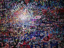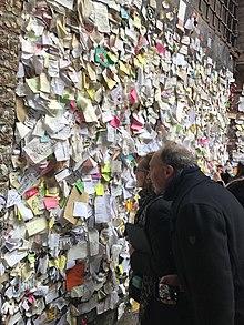 Many people write their names and the names of loved ones on the walls of the entrance, known as Juliet's wall. After a restoration and cleaning of the building, it was intended that further writing should be on replaceable panels[8] or white sheets[9] placed outside the wall.