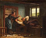 Johan Julius Exner, (30 November 1825 – 15 November 1910), Danish genre painter, was born in Copenhagen to Johann Gottlieb Exner, a Czech musician from Bohemia, who came to Denmark during the Napoleonic period, and his wife Karen Jørgensdatter. Exner originally intended on becoming a history painter, but quickly found his niche, however, in genre painting, the most popular and lucrative painting style of his era. His genre paintings figured prominently in Denmark's National Romantic period, an artistic period directly after the Golden Age of Danish Painting, when artistic focus was turned inwards to uniquely Danish themes.