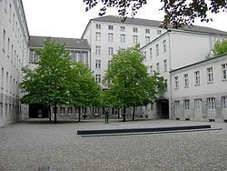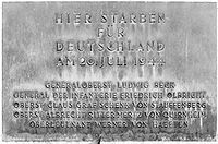 Memorial at the Bendlerblock: "Here died for Germany on 20 July 1944" (followed by the names of the principal conspirators)