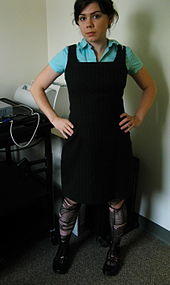 - ^ Gavin Ambrose, Paul Harris The Visual Dictionary of Fashion Design 2940373612-- 2007 - Page 190 "Also called a pinny, a pinafore dress was intended to be worn over a top or blouse, but the name refers to any sleeveless dress that fastens behind. The name originates from the aprons that were pinned to the front of a dress."