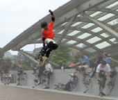 Jumping stilts, bounce stilts or spring stilts are special stilts that allow the user to run, jump and perform various acrobatics. Spring stilts using fiberglass leaf springs were patented in the United States in 2004 under the trademark "PowerSkip", marketed for recreational and extreme sports use.[1] Spring stilts are often mostly made of aluminium. Using these stilts is also called "bocking" or "powerbocking", a corrupted version of the name of the stilts' inventor, Alexander Böck.