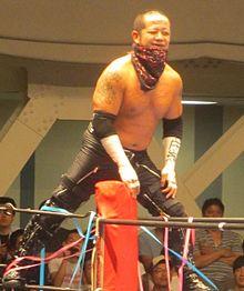 Since then Kasai has wrestled mainly for BJW and occasionally for other promotions such as Pro Wrestling Zero-One, K-Dojo and Apache Pro-Wrestling Army. Kasai's body is covered in scars, from all the hardcore wrestling he has done. This includes a Fans Bring the Weapons Match from the CZW show "Un F'n Believable", in which he took a bump onto a light tube board which ripped open his left elbow, exposing bone.[7] In 2006 he won the first-ever IWA East Coast Masters of Pain after defeating Toby Klein, Mad Man Pondo and J. C. Bailey.[8]