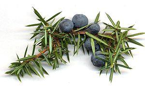 Juniper berries are used in northern European and particularly Scandinavian cuisine to "impart a sharp, clear flavor"[1] to meat dishes, especially wild birds (including thrush, blackbird, and woodcock) and game meats (including boar and venison).[8] They also season pork, cabbage, and sauerkraut dishes. Traditional recipes for choucroute garnie, an Alsatian dish of sauerkraut and meats, universally include juniper berries.[9] Besides Norwegian, Danish and Swedish dishes, juniper berries are also sometimes used in German, Austrian, Czech, Polish and Hungarian cuisine, often with roasts (such as German sauerbraten). Northern Italian cuisine, especially that of the South Tyrol, also incorporates juniper berries. They are also used in the Italian region of Apulia, especially to flavour brines.